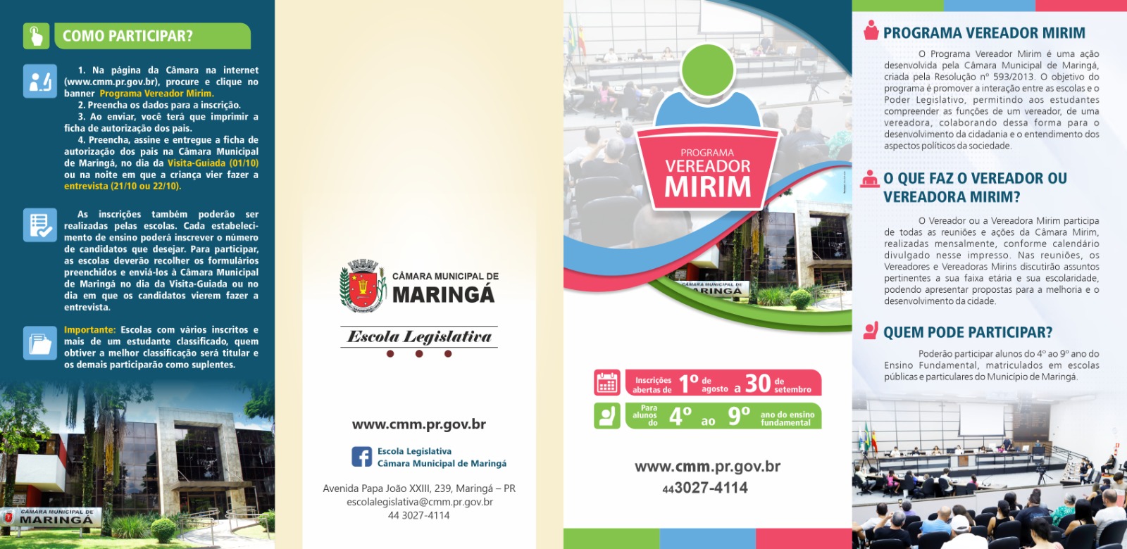 A abrangência do projeto é municipal, com impacto regional, beneficiando diretamente estudantes do ensino fundamental, médio e superior, famílias, vereadores e servidores efetivos e comissionados. Estima-se o envolvimento direto anual de mais de 2 mil participantes e beneficiários indiretos é toda a comunidade maringaense