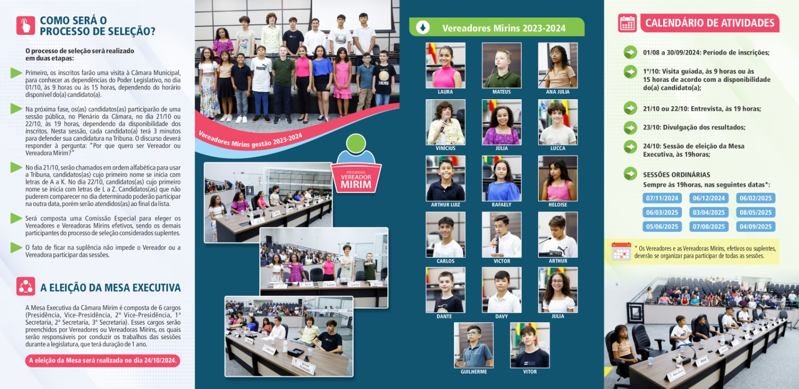 3. realizar mais um processo de seleção do Programa Vereador Mirim em outubro de 2025, com a média de 100 inscritos e 23 eleitos;