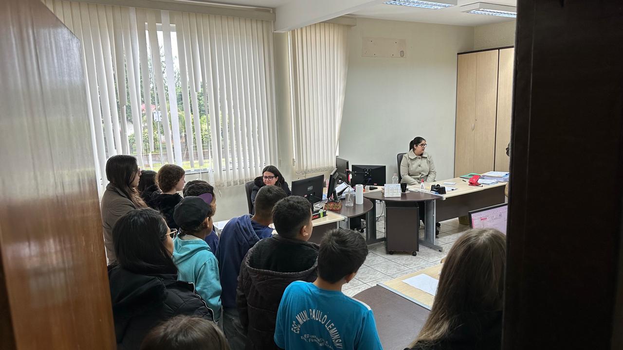 Durante as visitas, os estudantes demonstraram grande interesse, curiosidade e envolvimento, participando ativamente das conversas com os servidores e reconhecendo a importância de cada setor para o funcionamento da cidade. Ao final da atividade, todos os alunos firmaram simbolicamente um compromisso com a prefeita para cuidar de Juranda, levando esse pacto de responsabilidade para dentro de suas casas e compartilhando com suas famílias o que aprenderam.